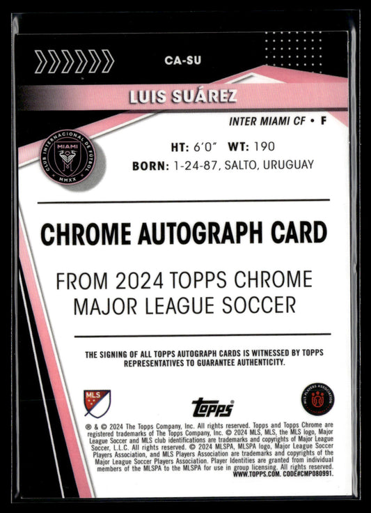 2023-24 Luis Suarez Autographe Topps Chrome MLS Mania Pink 01/50
