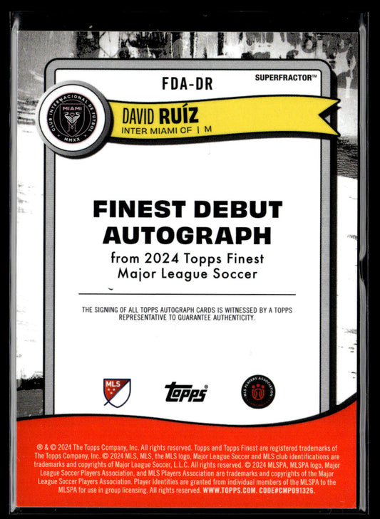 • 2024 David Ruíz 1/1 Autographe Superfractor Finest MLS Finest Debut