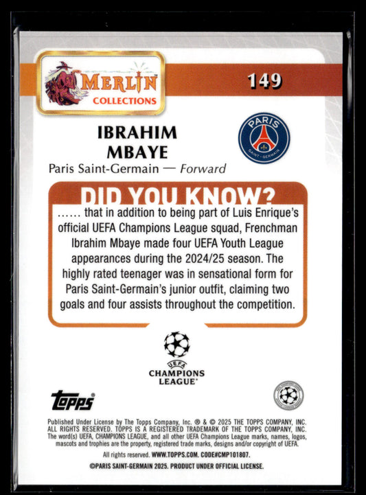 2025 Ibrahim Mbaye RC 12/25 Topps Chrome UCC Merlin
