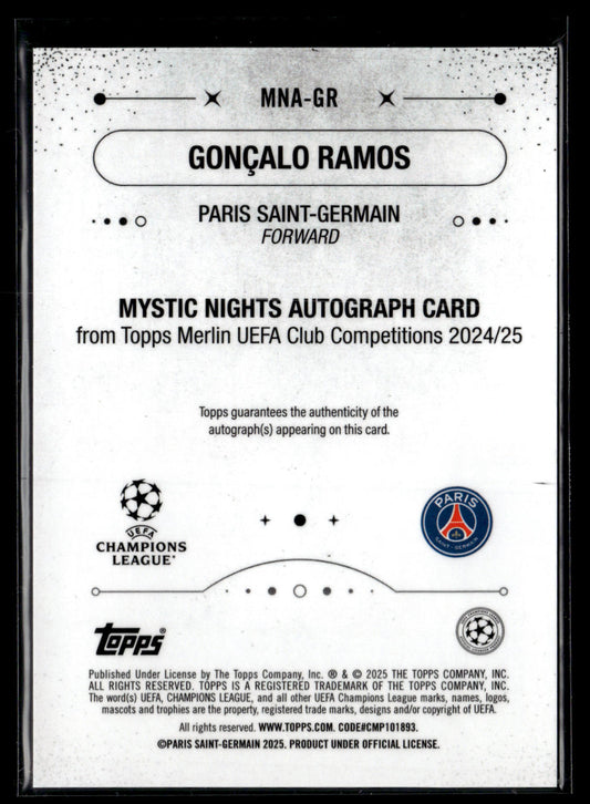 2025 Goncalo Ramos 96/99 Autographe Mystic Nights Topps Chrome UCC Merlin