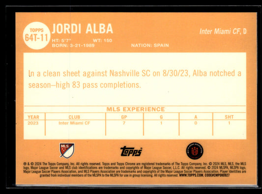 2023-24 Jordi Alba 1/5 Topps Chrome Sapphire MLS