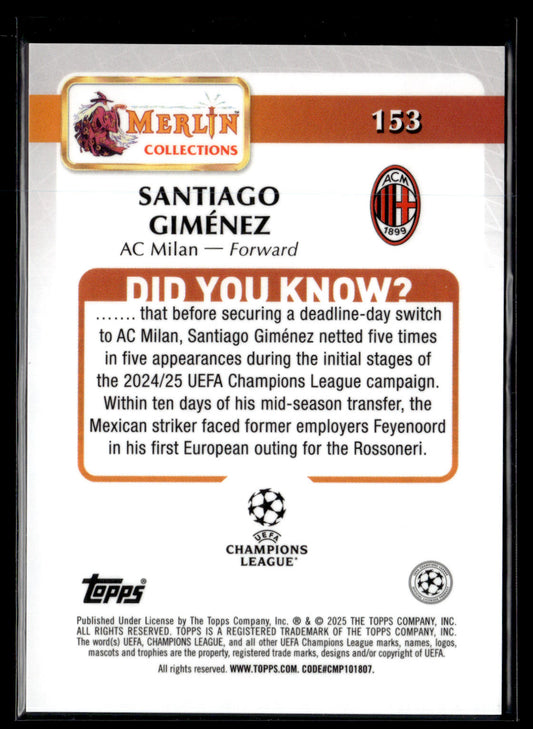 2025 Santiago Gimenez 5/5 Topps Chrome UCC Merlin