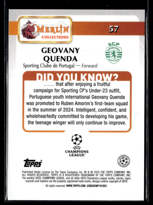 2025 Geovany Quenda RC 04/25 Topps Chrome UCC Merlin
