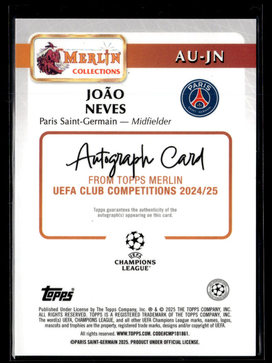2025 Joao Neves 69/75 Autographe Topps Chrome UCC Merlin