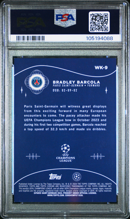 2023-24 Bradley Barcola RC 01/10 Topps Chrome UCC PSA 9